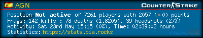 | 2 | emperaDOR^^ | 0d 00:44:00h | 2020-05-21 20:56:31 | 45 | 21 | 2.14 | 9 | 0.20 | 0 | 23.8% |
